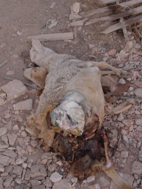 On our way home from gazing at cute baby sheep, we saw this dead sheep in the fields.