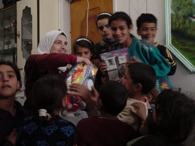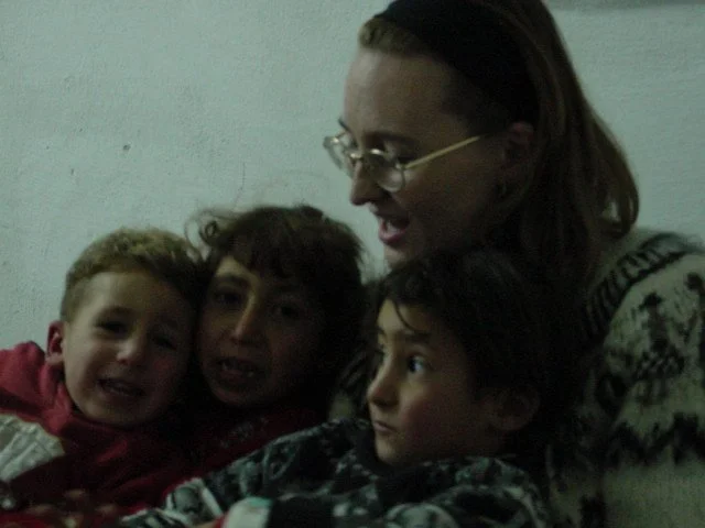 We headed out to the Baqaa Valley outside of town to visit with a couple of families. Poised near the Kiryat Arba' Israeli settlement, these homes are under constant threat from home demolitions. Some of these homes have already been slated for the bulldozer. CPT has been involved with the Campaign for Secure Dwellings (CSD), which has paired up the families in these homes with congregations in the US and Canada. One among our group came with a word of encouragement (and a bag full of balloons!) from her Quaker congregation. The father has been unable to reach his job in Israel because of the harsh West Bank closure, so in addition to the question mark over their house is a question mark over their whole future.