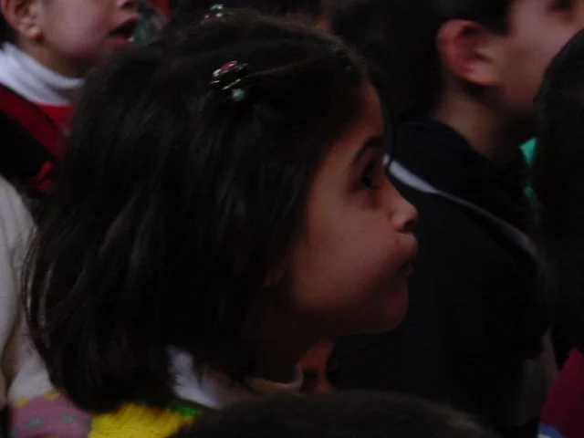 The puppet show has the crowd at rapt attention.