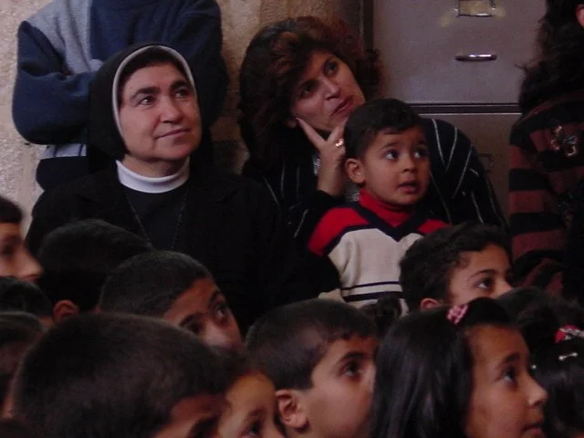 Today following the worship service, we had a special treat for the children - the Bible Society of Jerusalem sent a group of five young adults for an afternoon of puppet shows, games, and presents. The organization had a number of projects underway when the Intifada began (including a new Bible museum in Bethlehem) and had to abandon them. But they realized that they needed to do something for children who are living under these conditions, and began traveling around to schools and churches to perform puppet shows centering on the theme of forgiveness (the play is loosely based on the story of the "Prodigal Son"). One's ministry must always be open to the Spirit.