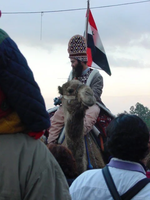 There were some pilgrims from the rest of the world, but taking the center stage were a group of Christians from around the world who had traveled on foot and camel from Iraq through Syria and Jordan. They had symbolically followed the path of the Magi who came to visit the Christ Child 2000 years ago. The planning for this trip began long before the Intifada, but became that much more potent as a Pilgrimage for Peace along the way. Their travel had lasted 99 days, and had been rather smooth until two of their number - one from Sudan and one from Zimbabwe - were prevented from crossing the Allenby Bridge by Israeli forces. Fortunately, the situation was resolved in a mere four days and they arrived in time for the procession.