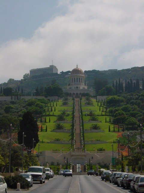 We made our way from Ramallah to Jerusalem (past the Orient House that was seized last night) and headed off to Haifa. We arrived at the Baha'i Temple - where Marthame had been with his family in April - to find the shrine closed for renovations. Still, the gardens and the view were spectacular.