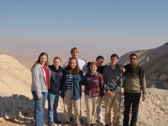 Our American group poses for a photo with their Palestinian taxi driver along the Jordan Valley road.