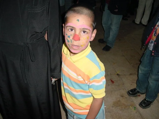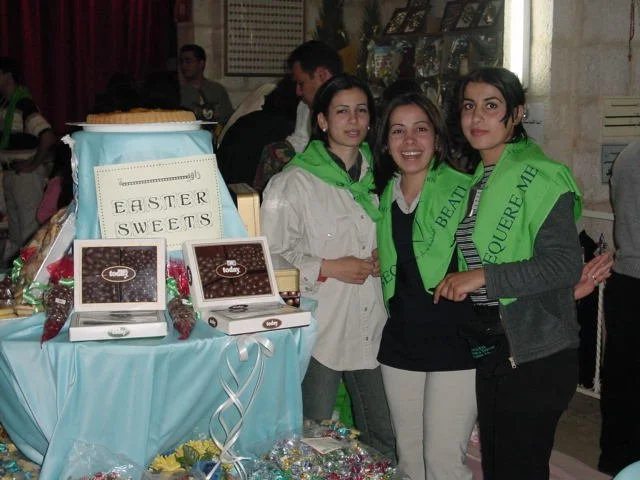 The church bazaar also continued this evening. Marthame stopped by to see what was happening. In addition to the local handicrafts and religious goods (artwork, CDs, etc.), not to mention the face-painting, there was also a table set up for refreshments - fresh-squeezed orange juice and pastries. Transport the scene across the Atlantic and you've got a good old-fashioned church fundraiser. The spirit in the hall was great. Folks from throughout the community - Christians and Muslims alike - stopped by to visit.