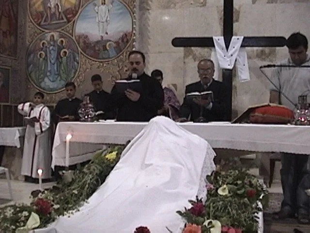 We then went to the Orthodox church where they had just finished up their service of the burial of Christ. Marthame picked up two lanterns from Fr. Thomas for tomorrow's trip to Jerusalem. By the look of them, they've made the trip many times before. Then it was off to the Latin Convent to pick up the keys to Fr. Aktham's car (an early departure), then to Fr. Firas' to borrow his robe. A truly ecumenical venture.