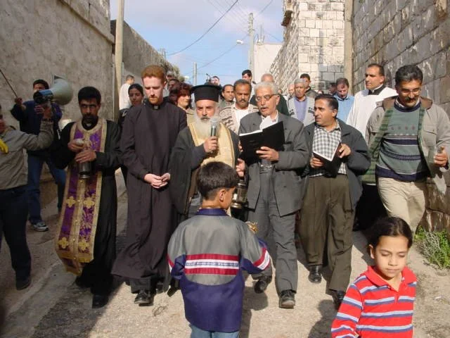 We arrived back in Zababdeh, with everyone waiting for us. The Scouts led the ecumenical procession, as we stopped at each of the churches for a brief prayer at each. People said it was the first time in three years that there's been such a celebration in town.