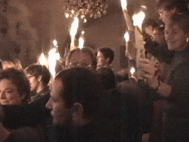 For the gathered faithful, however, all conflict seemed forgotten as soon as the light was passed from the tomb, and joyful celebration erupted upon the floor of the church. Perhaps that was the true miracle of the Holy Light this year.