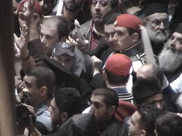 When the Greek procession began, we could see a lot of shoving down on the floor. It was difficult for the Patriarch to make his way through, and we were concerned something worse was going to happen. Fortunately, the worst that seemed to happen was some shoving and insults, which is far milder that what some expected. Nevertheless, the whole affair seems to us to be in extremely poor taste considering the broader context of the region.