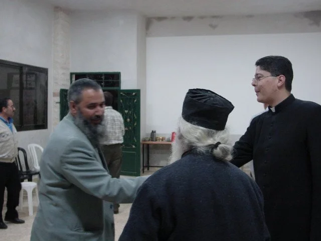Zababdeh’s Sheikh stops by to greet the Christian clergy. These interfaith visits are common, especially at feast times.