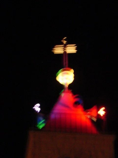 The cross on top of the church is lit up with new lights, too, in celebration of Lent. Everyone is watching the events in Baghdad with great interest. Sharon has now made a statement that the Palestinians should learn a lesson: what happened in Baghdad can now happen in the West Bank. People here joke with us: If he means removing the undemocratic tyrant running rough-shod over them, then he'd better be careful - Palestinians would welcome the Americans arriving to remove Sharon from power.