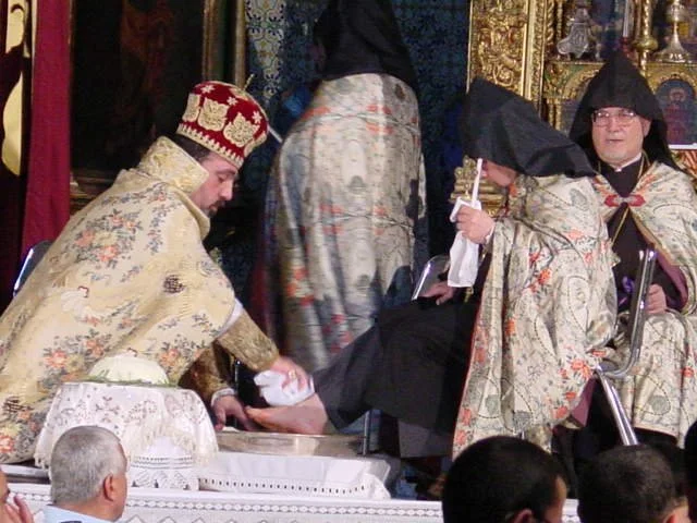 The Armenian Orthodox Patriarch washes the feet of his bishops.