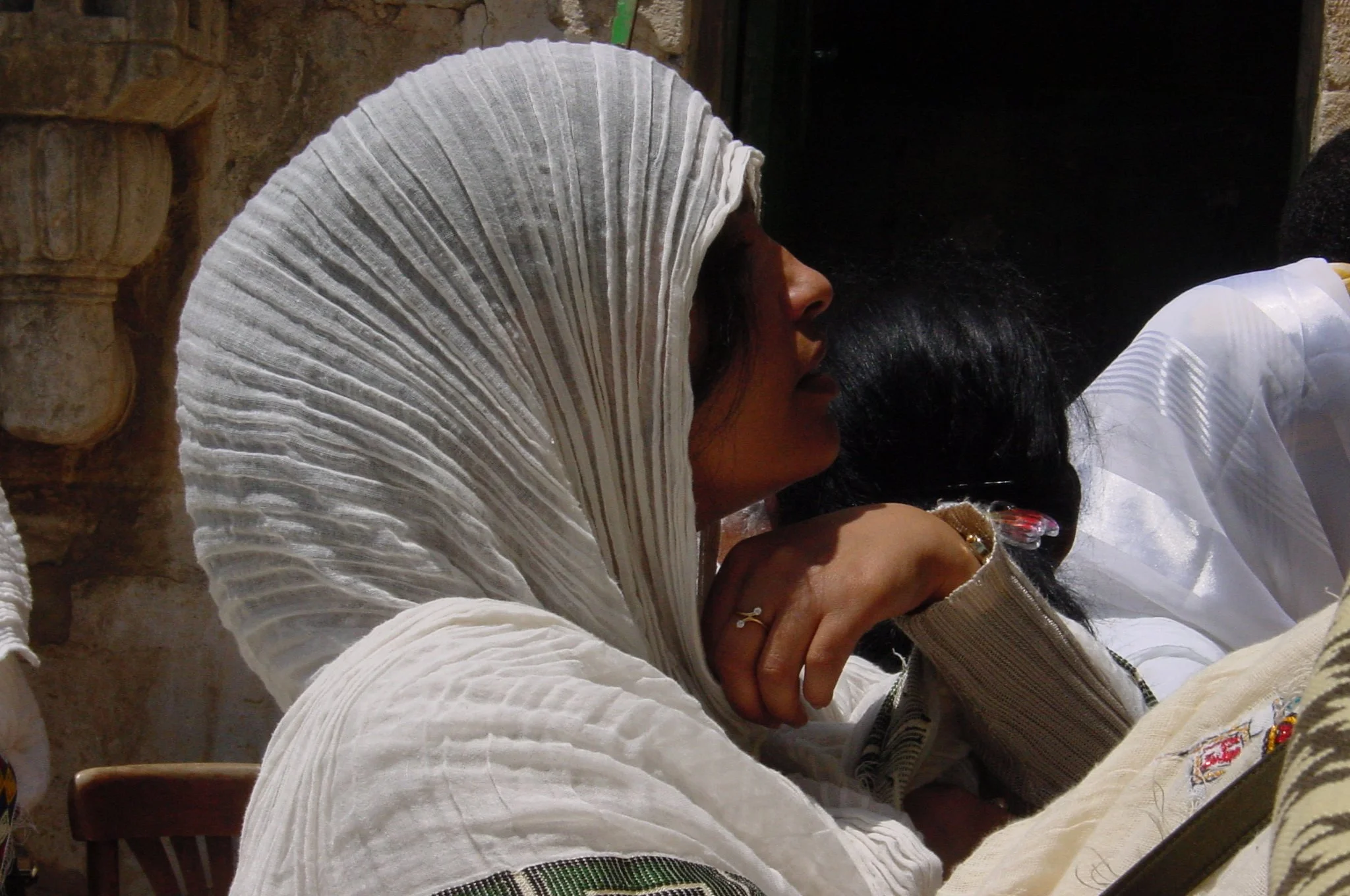 An Ethiopian woman on the roof of the Ethiopian Orthodox convent on the roof of the Holy Sepulchre.