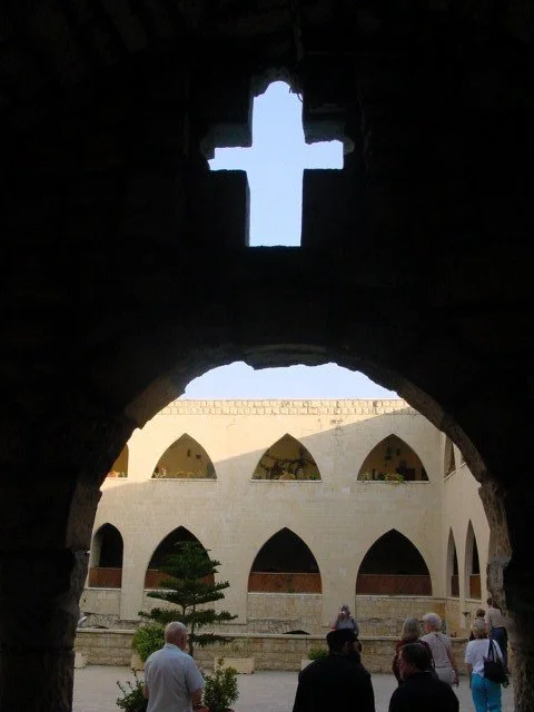 While we were exploring the immensity of the castle, we saw a Jordanian group filming a historical drama for TV. Seeing the actors decked out in costumes was jarring, especially as they were surrounded by the modernity of lights, cables, and cameras. We also enjoyed seeing the mix of Crusader and later Mamluk architecture in the building. Most of the 40 villages in the Valley below have remained Christian, with the exception - ironically, perhaps - of the village closest to the Krak.