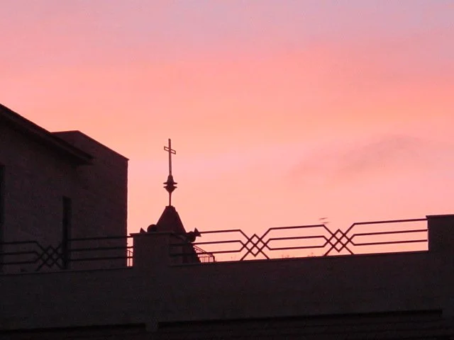 In the early afternoon we went to the Latin Church courtyard. Elizabeth sat with women as they gathered outside before the funeral. Marthame joined the village clergy, who walked together from the Latin church to the beit al-azza, and then back again, preceded by acolytes and followed by the pallbearers with the coffin, mourning men, and finally mourning women. The church soon filled after the procession entered. The service is a simple one of witness to the resurrection - there's little singing, no eucharist, and everyone stands for the duration. The procession then moved onto the cemetery for burial.