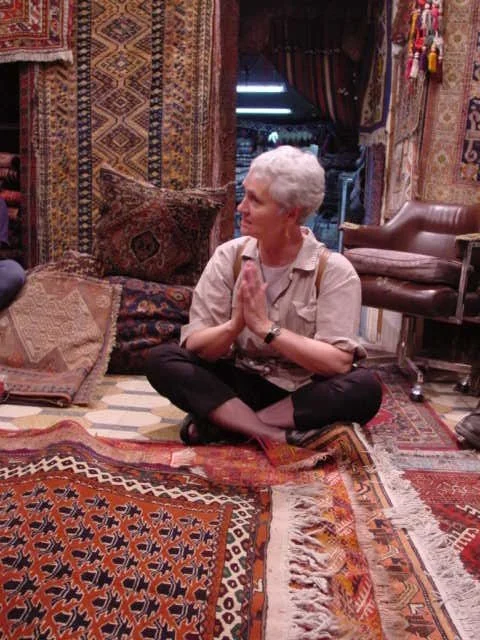 We then headed off to shop in the Old City. Marthame headed off to look for some beautiful pearl inlay lacquer boxes. While waiting for the shopowner's son to track down a portable argile (the traditional Arab water-pipe, a gift from our group to our leader), Marthame admired some of the old Russian icons for sale while they watched a couple of World Cup matches together. Meanwhile, Elizabeth headed off with a small group to look for rugs and gold in the Old City's markets. Elizabeth wasn't going to buy another rug, but was more than happy to watch rug proprietors show their wares to other customers. There were some beauties!