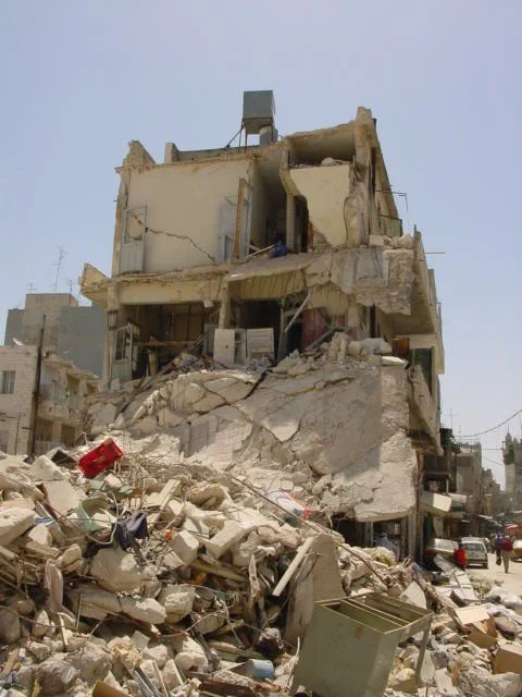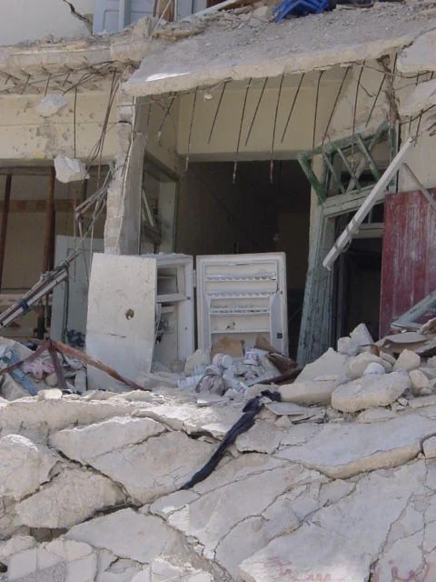 We headed towards the busy center circle, passing through the Old City, which Elizabeth hadn't seen since the April siege. It is amazing to see several-foot thick stone walls destroyed, and to imagine the firepower necessary for that. The worst damage was still not as comprehensive or expansive as in Jenin Camp, but it was still very disturbing. The estimates are that more damage - in terms of both lives and dollar figures - was done here.