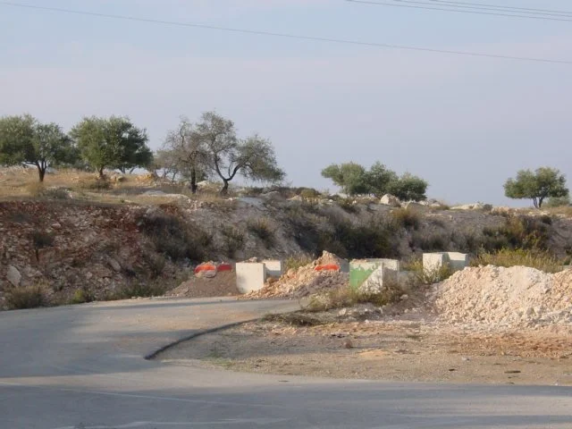 The blocked road to one of the two small Israeli settlements on the outskirts of Jenin.