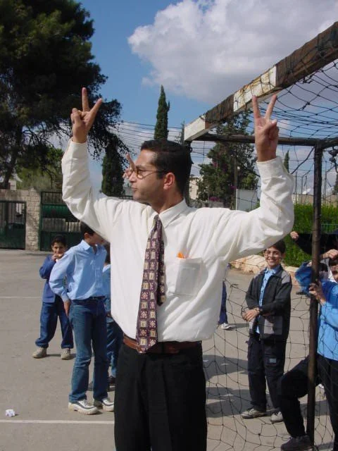 Today at break the teachers' team played against the 11th grade soccer team. The students were all dressed and ready - the teachers, well, less so...the goalie was dabbing his sweat away with his tie, and Abuna Aktham loosened his collar to jump in the game. The final score? 4-4. Marthame scored a goal. A completely impartial observer said, "It was the nicest goal I have ever seen - Reynaldo has nothing on you." He gained some prop points with the high school students for his old (now almost retired) skills. Now the 10th grade is itching to take on the team. We'll have to wait for tired muscles to strengthen a bit.